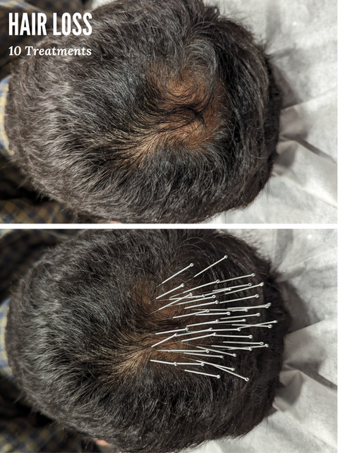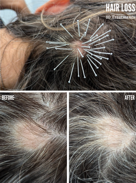 Cosmetic acupuncture for hair loss aims to stimulate hair follicles and promote hair growth. By increasing blood flow to the scalp and balancing energy flow, acupuncture can help nourish hair follicles and encourage the growth of new, healthy hair. (Click here for photos.)